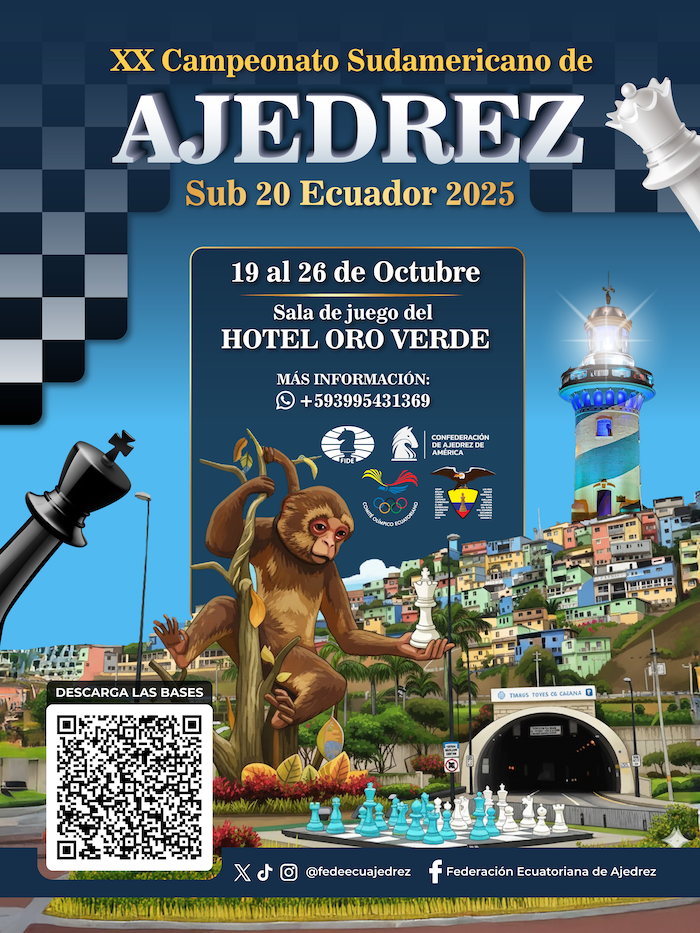 Between October 19 and 25, the 2025 edition of the South American Junior Chess Tournaments will be held at the Oro Verde Hotel in the city of Guayaquil.